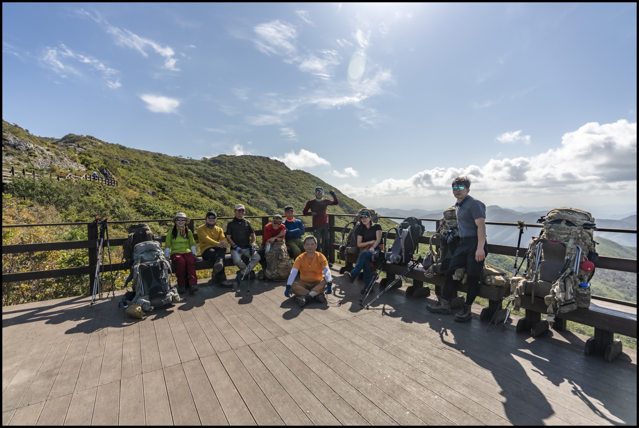 그렇게 밟아 올라가다 보니 넓은 전망데크가 보입니다. 다들 조금씩 지쳤는지 전망데크에 배낭을 내려놓고
