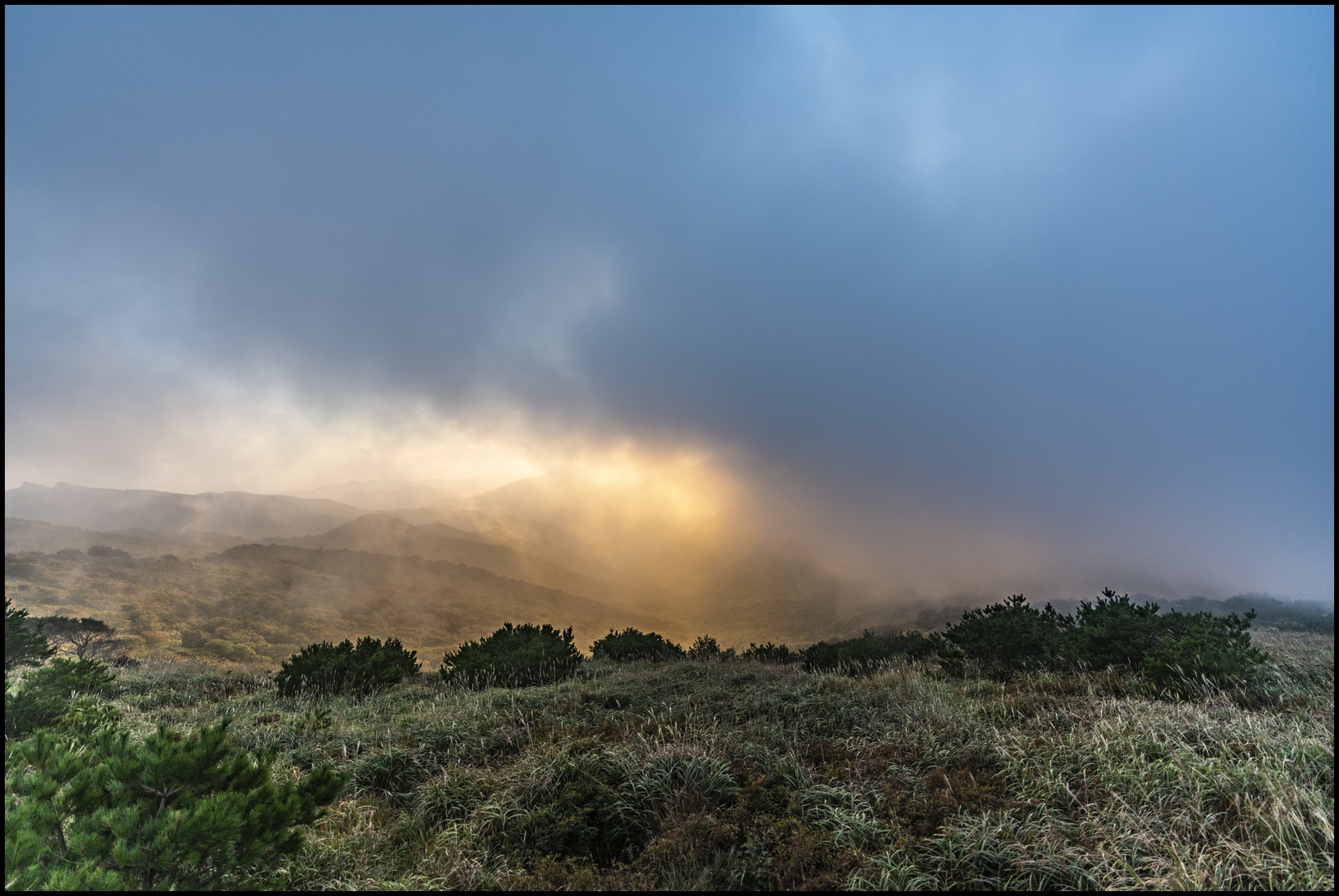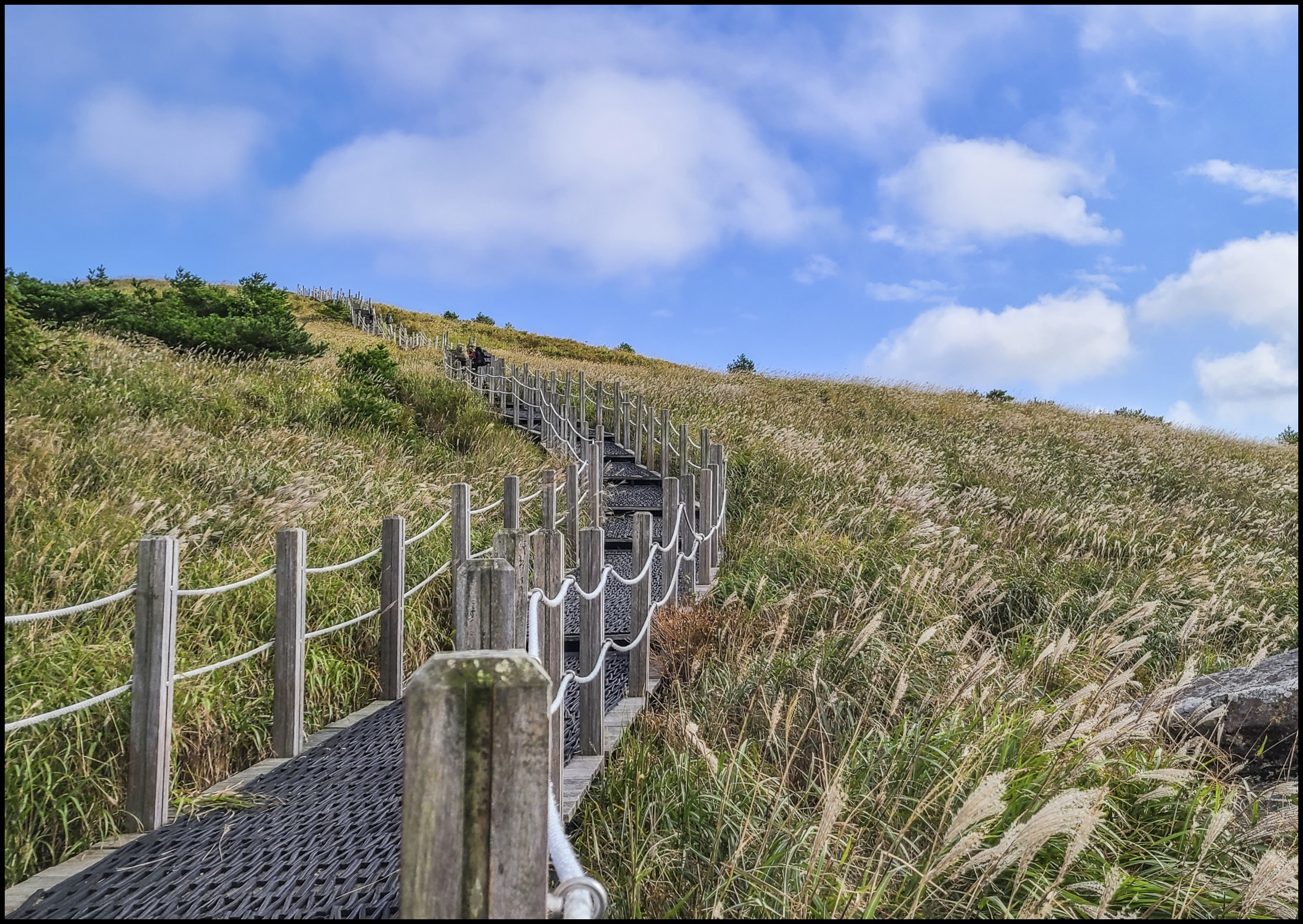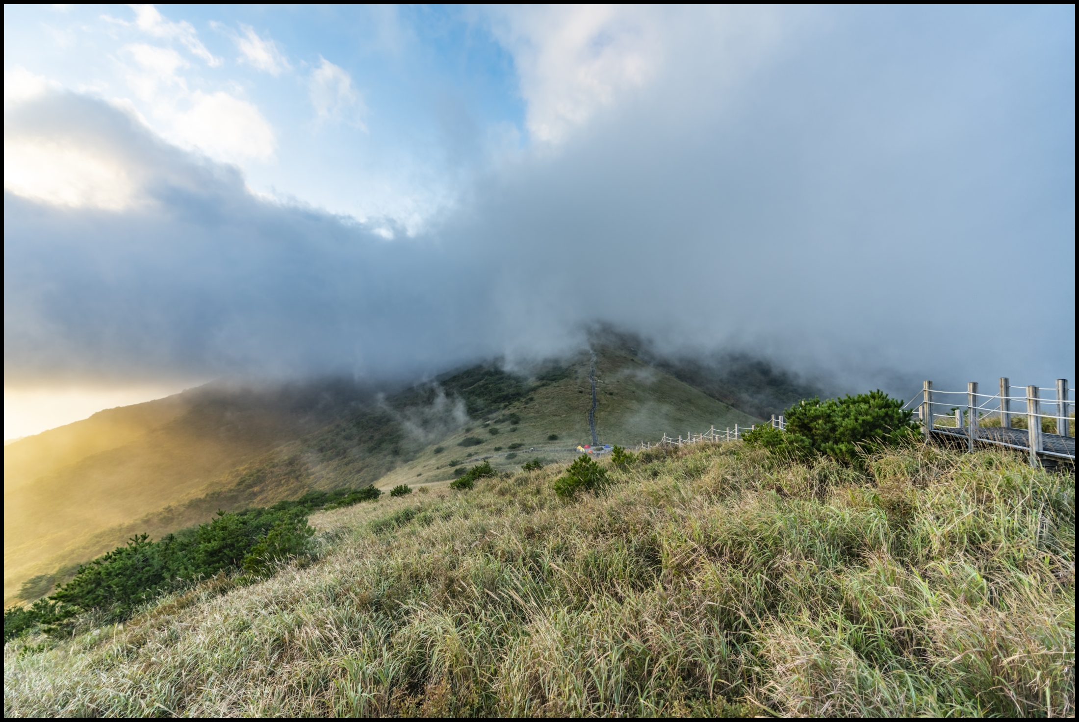 걸어가니 비는 그치고 우리 눈앞을 가리는 운무는 그치지 않고 계속 머물고 있어 구름 속을 걸어가다 보니