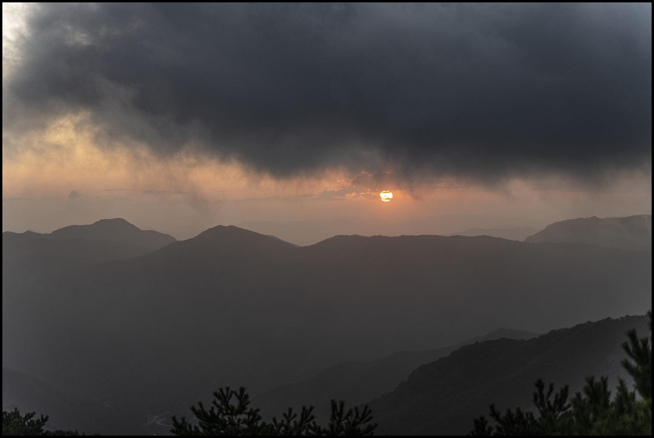 준비하고 다 같이 맛나게 저녁을 먹으려고 하는데 갑자기 날씨가 흐려지고 지나가던 구름들이 능선을 삼키
